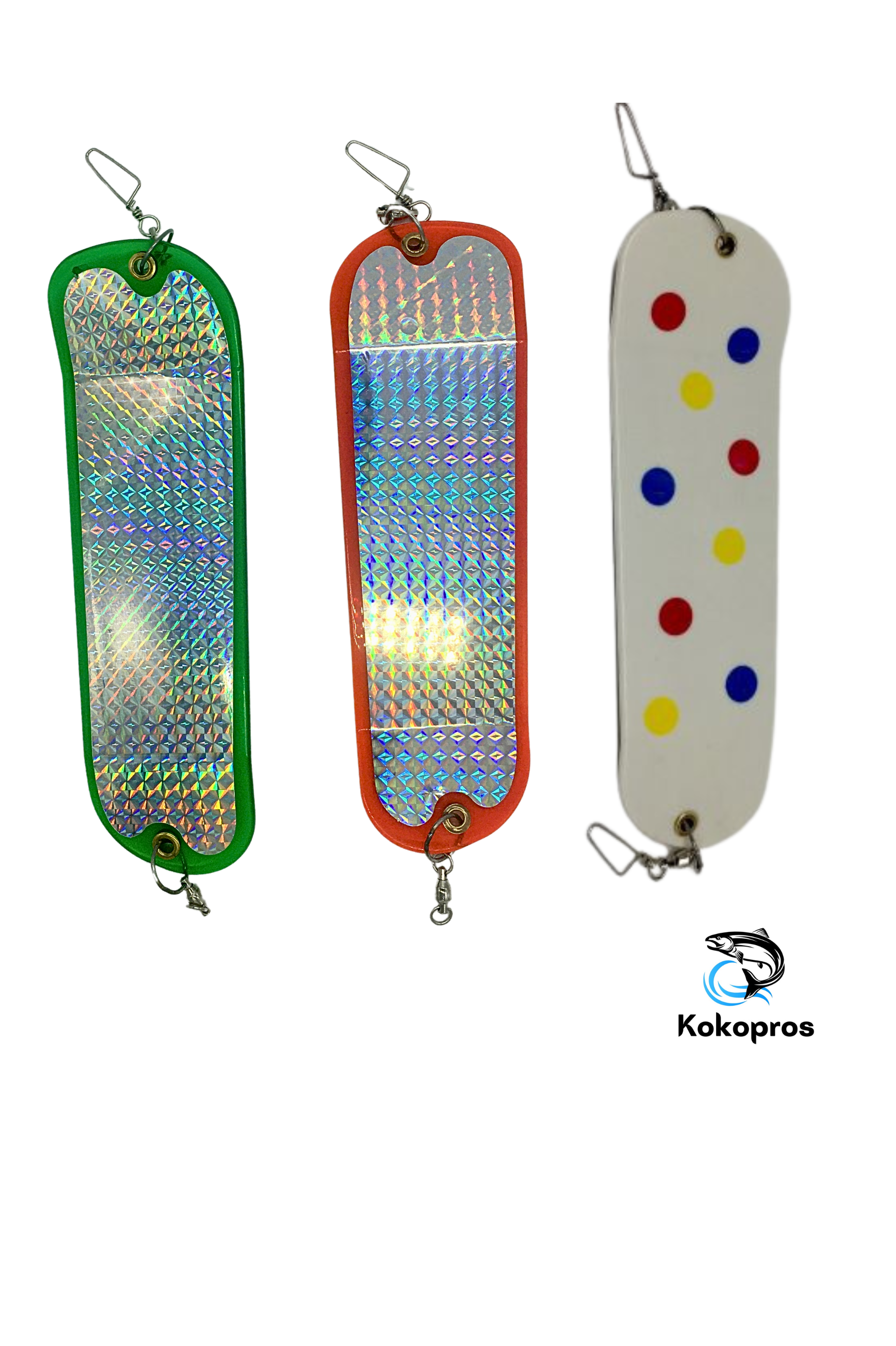 KOKOPROS ® Salmon Fishing Flashers *8 1/2 in 3 PK- Green Machine, Orange Machine & Wonder Machine.