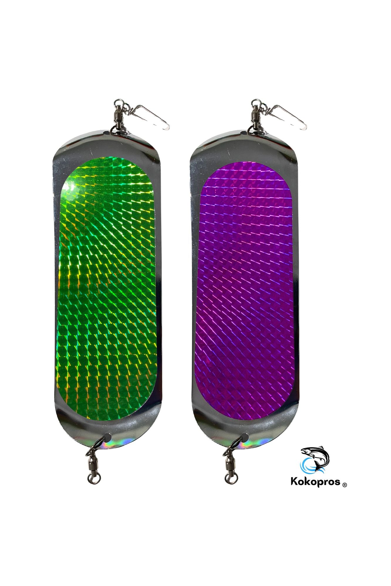 Kokopros Skateboard 8 1/2" Salmon Fishing Flashers - Green & Purple - 2-PACK