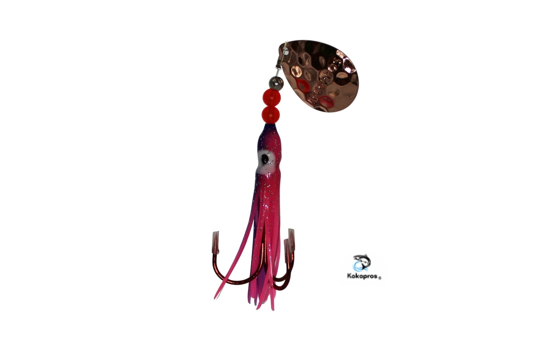 Salmon Tackle - Kokopros® Purple and Pink - 2/0 Treble - Luminous Salmon Hoochie - Kokopros Spinner Blade- (TREBLE)