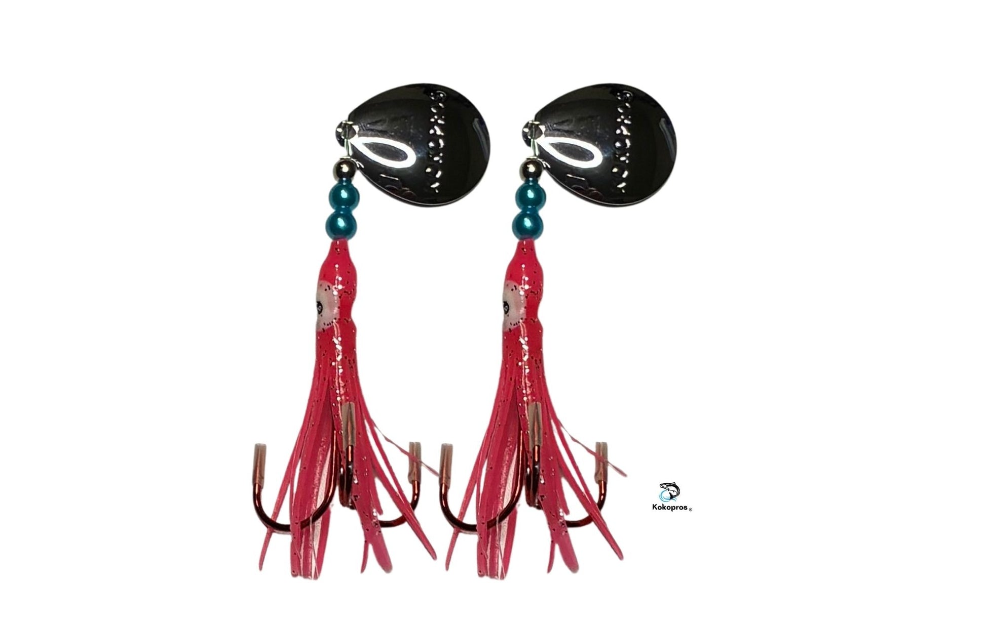 - KOKOPROS SPINNER BLADES FOR ADDED ACTION: these hoochies provide additional movement in the water, mimicking baitfish and increasing your chances of attracting fish.
