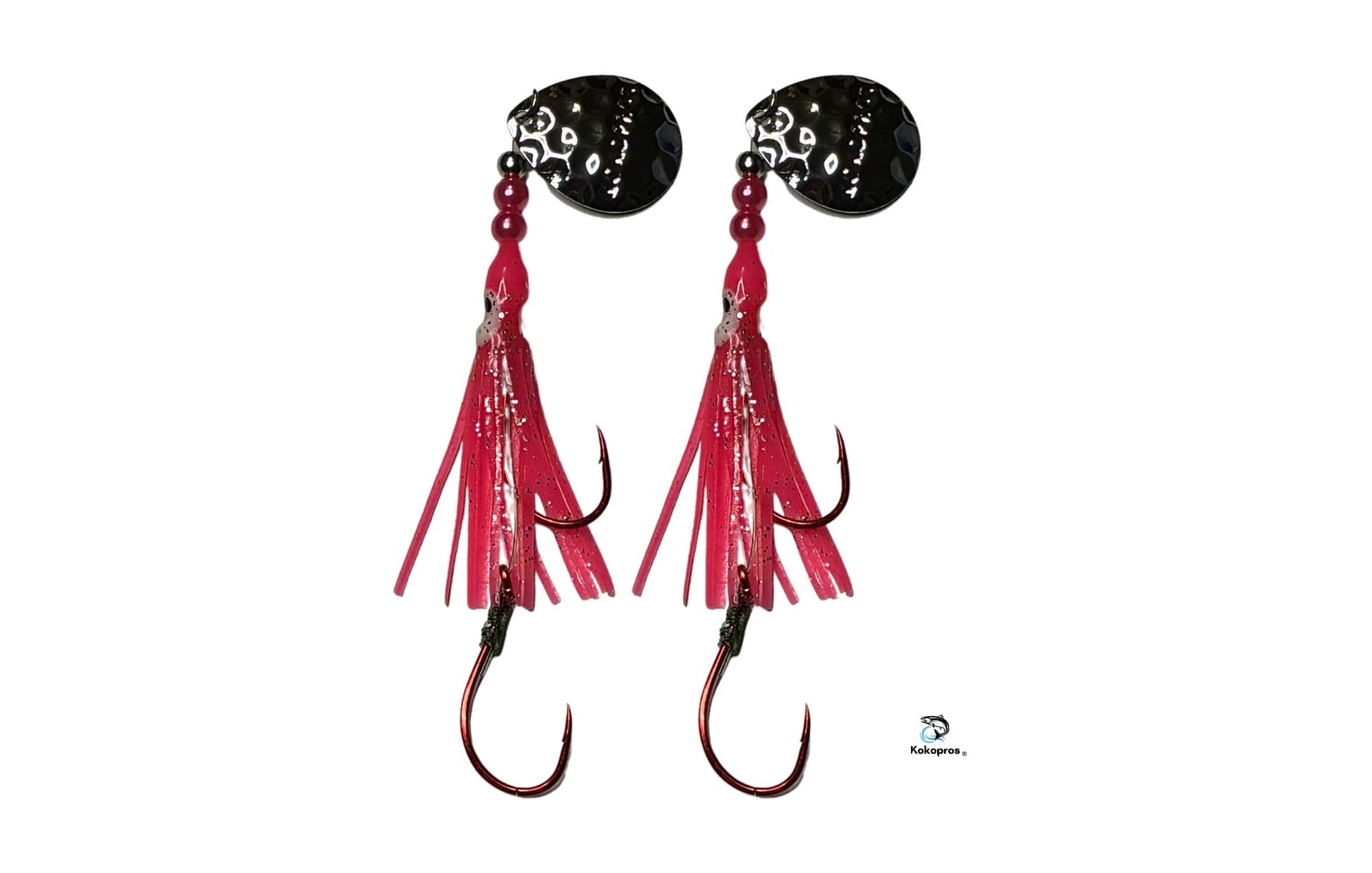 Salmon Tackle - Kokopros® Twin Pack Hot Pink - 4/0 Octopus Snell-Luminous Salmon Hoochie Kokopros Spinner Blade (SNELL)